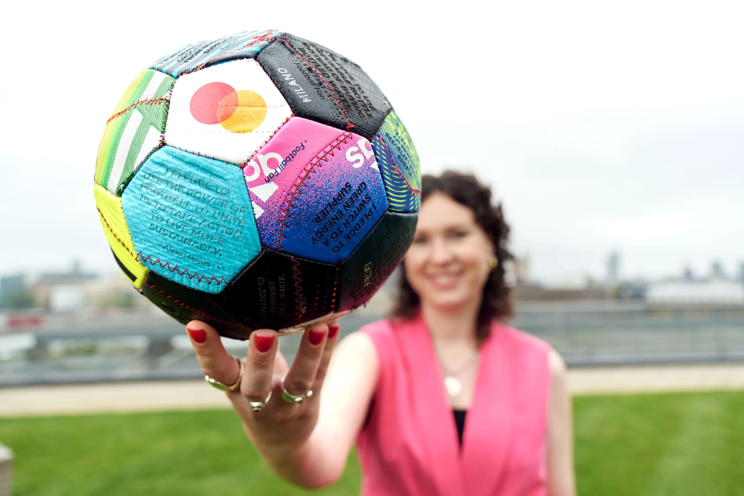 Representing the collective impact and desire for change, from individual to industry, the Pledge Ball was created by designer Helen Kirkum. Engraved on the ball, made from old football boots, were environmental commitments from across the football industry, from fans to clubs: